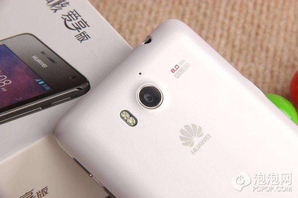 华为荣耀四核爱享纯真版手机机身背面配备了一枚800万像素的BSI摄像头,同时配备了双LED补光灯。6/13