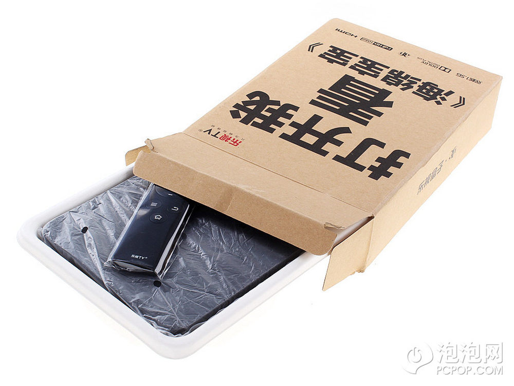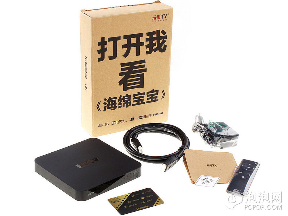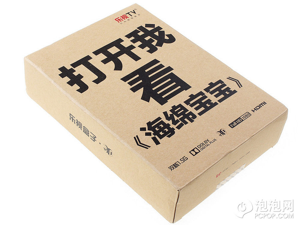 乐视盒子C1的包装使用了质朴、环保的黄色回收牛皮纸壳。正面硕大的“打开我看{海绵宝宝}”文字挺有视觉冲击力,还多了一些卖萌的味道,亲和力一下子就凸显出来。3/22