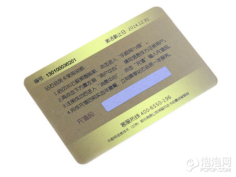 这是随机提供的一年内容服务账号卡。这张卡单独出售的价格是499元,对于乐视老用户的售价是399元。