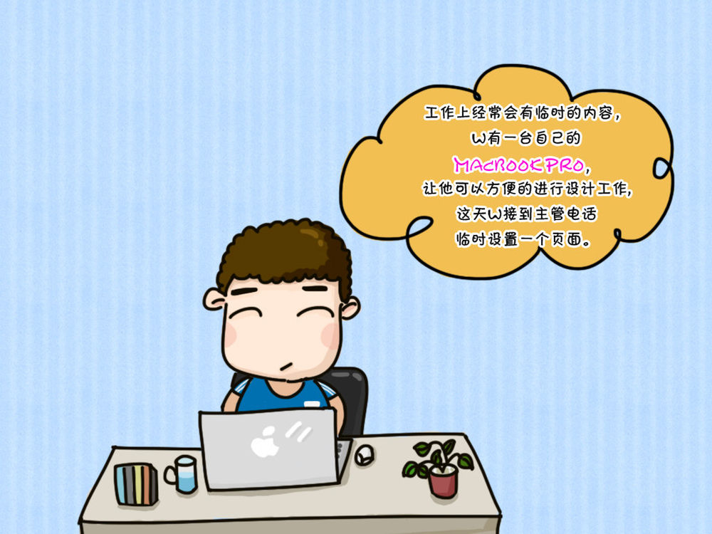 故事就这样开始了:W是一家电子商务公司的平面设计师,个人非常崇尚简约,由于工作的需要,对电脑的分辨率和画质有着很高的要求。3/11