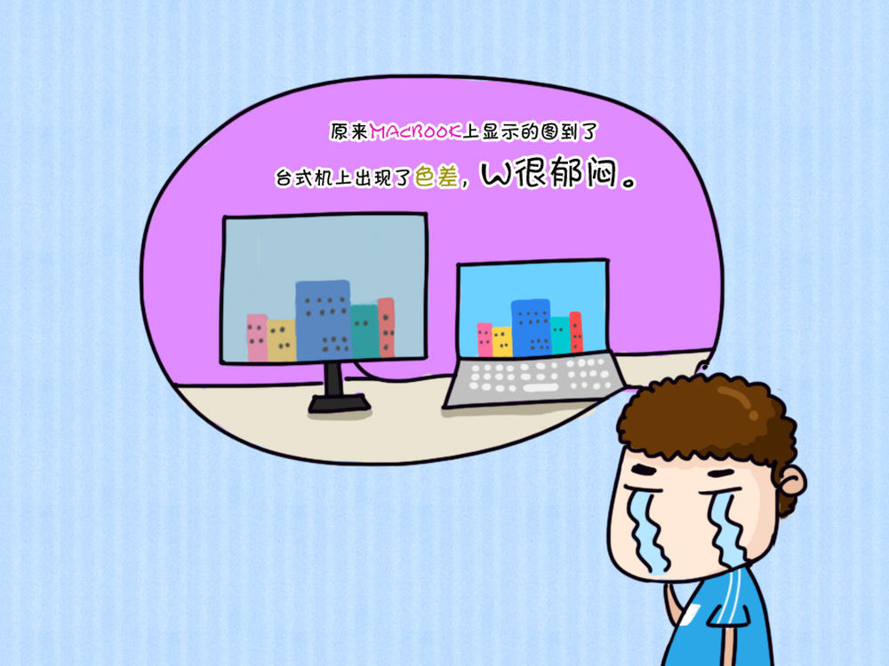 问题还得归结于那台显示器,W设计的临时页面在自己的MacBook Pro上效果非常不错,结果对于并不完美兼容Mac OS的显示器,显示效果大打折扣,色彩出现了很大的偏差,为此W感到很苦闷。6/11