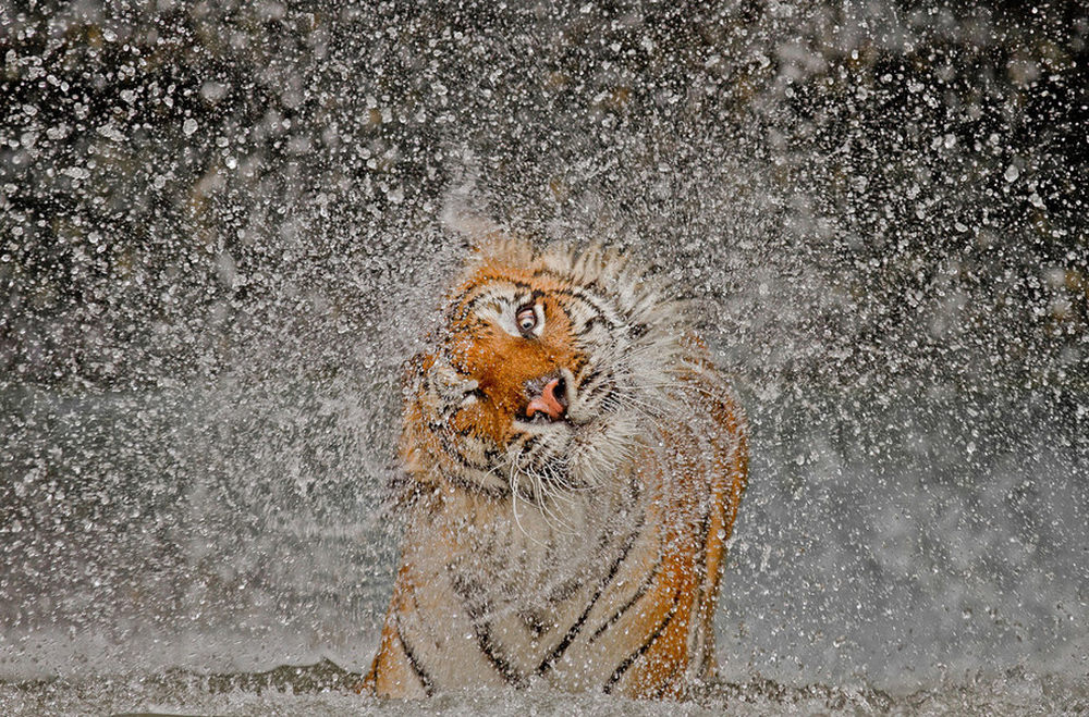 获得超级大奖的作品:这幅作品的主题名为Busaba,Busaba是一只愉快的生活在印度Khao Kheow动物园的雌性印度虎。得到这张作品之前我拍了无数张Busaba的肖像照,我发现想拍到与众不同的画面越来越困难,所以我抱着拍摄一些行为照片的希望小心的观察Busaba。机会终于来了!当Busaba高兴的在它的私人泳池里玩耍时,我拍到了它抖落身上水滴的瞬间。这是那一天这位妈妈最自然而亲切的微笑。摄影:Ashley Vincent3/15