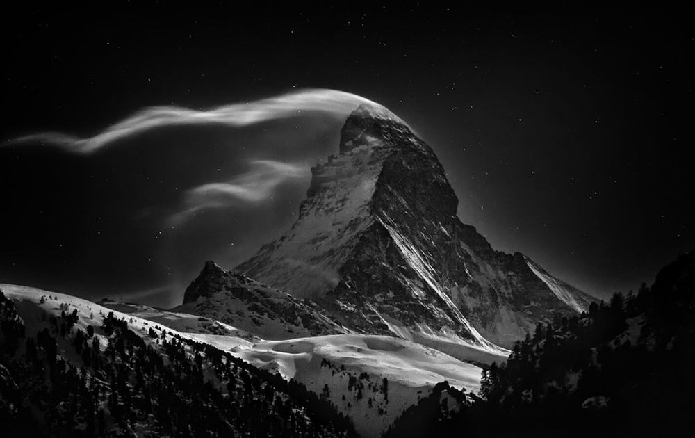 地方类第一名:满月之夜,海拔4478m的马特洪峰(阿尔卑斯山峰之一,位于瑞士与意大利之间的边境)。摄影:Nenad Saljic4/15