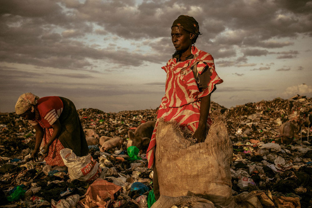 含人物的地方类第一名:【垃圾中的拾荒者】肯尼亚丹罗拉,傍晚时分,拾荒的妇女才被允许进入垃圾场中拾取垃圾。摄影:Micah Albert10/15