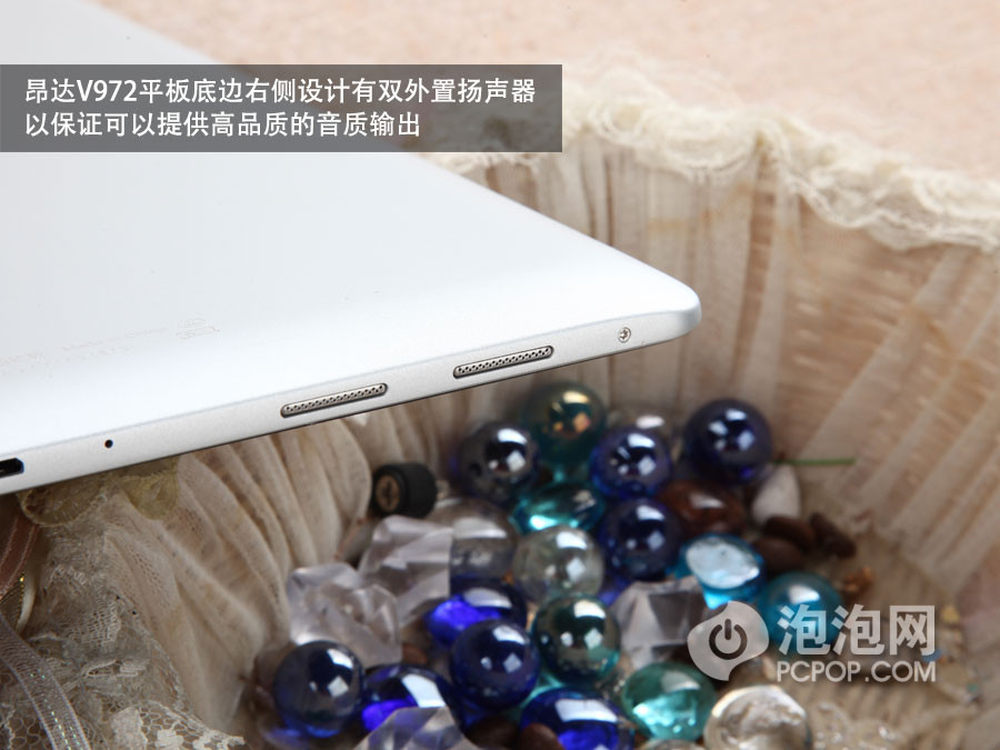 昂达V972底边设计有双外置扬声器,以确保稳定的音源输出。12/13