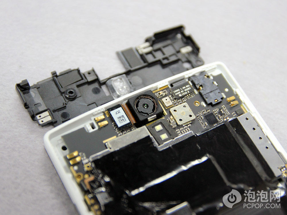 在OPPO Find5内部,将可以看到的螺丝拧下来之后就可以拆开塑料壳,因为会有卡扣固定,所以翘的时候要小心。打开上部的塑料壳,就可以看到摄像头元件。7/24