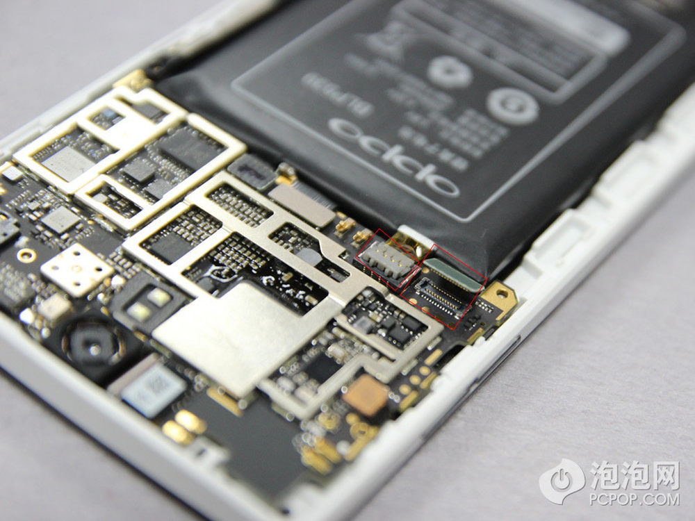 Find5电池与主板有两处连接点,取下电池前要先将两个触点断开才行。11/24