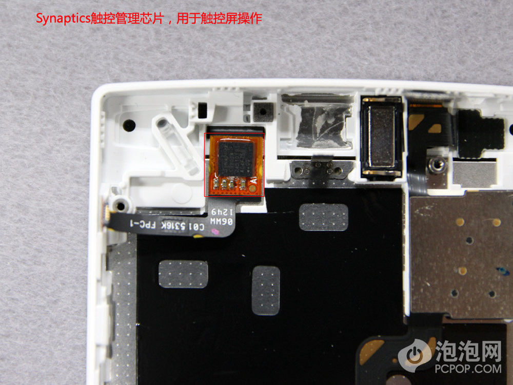 目前OPPO Find5工程机正面的系统功能键的背景灯是不亮的,但是实际上手机是有背景灯的,图中的芯片上就有背景灯。15/24