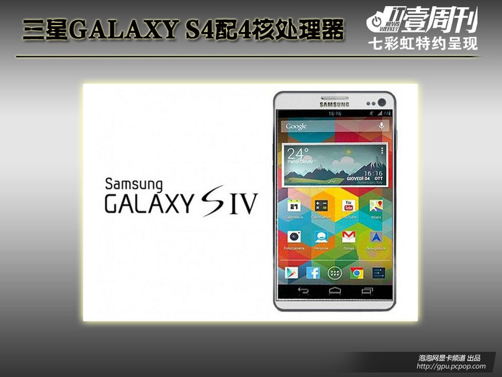 根据意大利媒体Android.caotic独家披露的消息称,三星GALAXY SIV将会搭载Android4.2系统以及配备2GB的RAM容量,触控屏规格则为5.0英寸FHD全高分辨率。至于内置的处理器则是三星猎户座Exynos 5440,这款处理器在去年年底才曝光,传闻采用28nm工艺,由三星一名工程师Kukjin Kim泄露。
