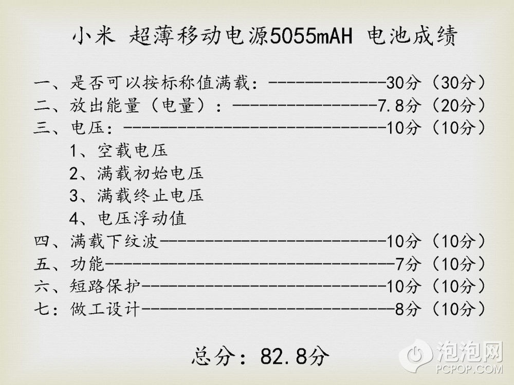 输出纹波测试也能代表电源的设计好坏,在我们测试过的移动电源中很少有能在满载下把纹波控制在50mv以内的,小米这款超薄移动电源只有40.2mv,非常不错。9/11