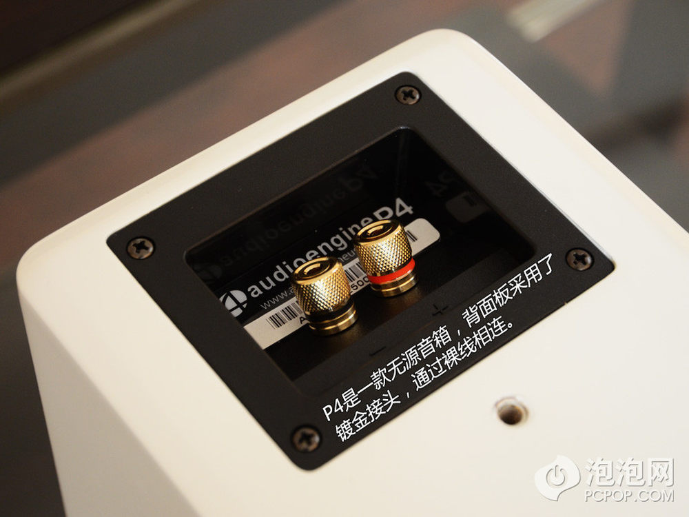 无源音箱的背面板布局很简洁,仅有一组镀金的接线柱即可,再无其他功能性的接口和按键。9/17