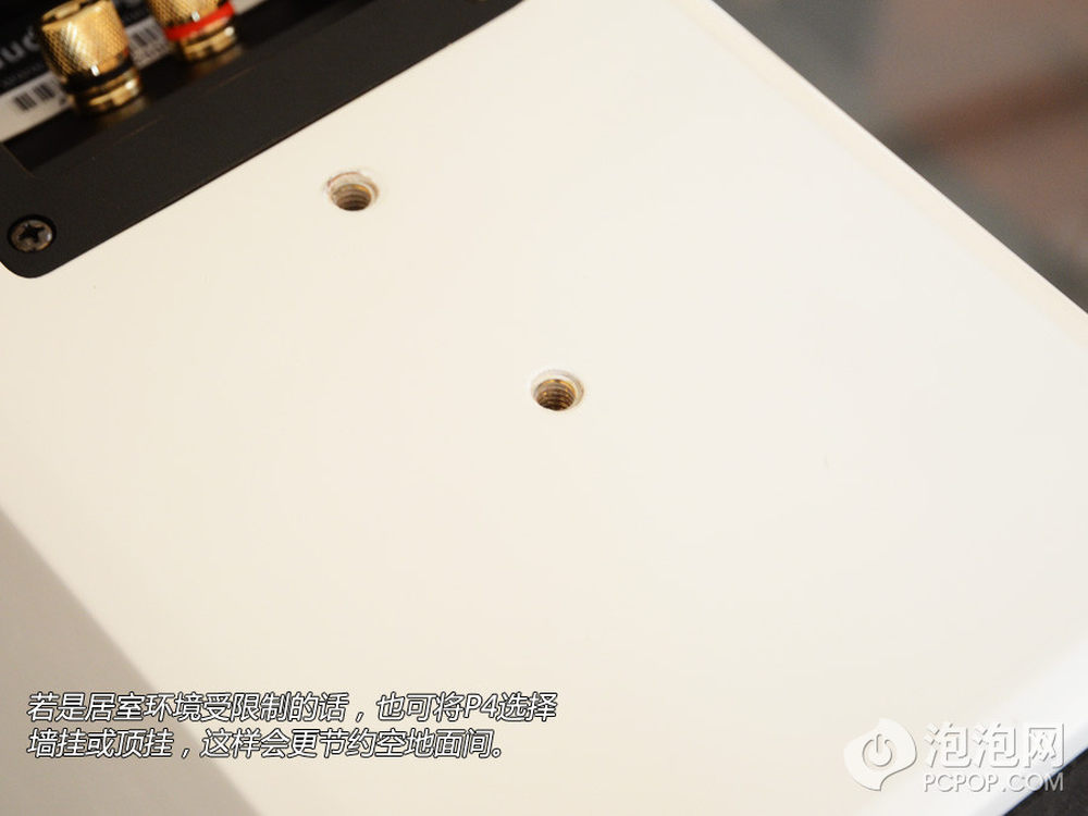 为了让P4音响安装固定牢靠,在箱体底部还提供了一个螺丝孔,以保证音箱安装时的稳固。12/17
