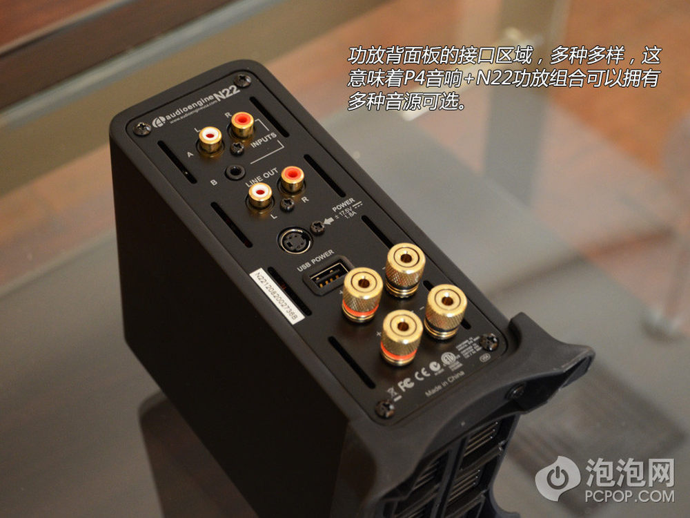 通过功放背面板的接口区域可以看到这套P4音响 N22功放的组合套装可以选择多种音源设备,用不同的音响系统来满足人们的听觉世界。16/17