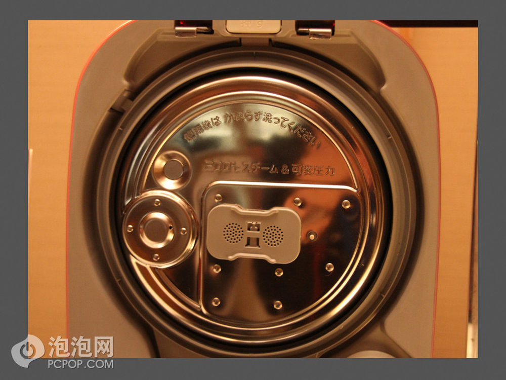 上盖内配备了两个调整加压和减压的“调压球”。据松下介绍,为保持压力以最大限度引出饭香味,准备了重量不同的球,反复进行了试验,以确保蒸出来的米饭具有最佳的口感。 5/8