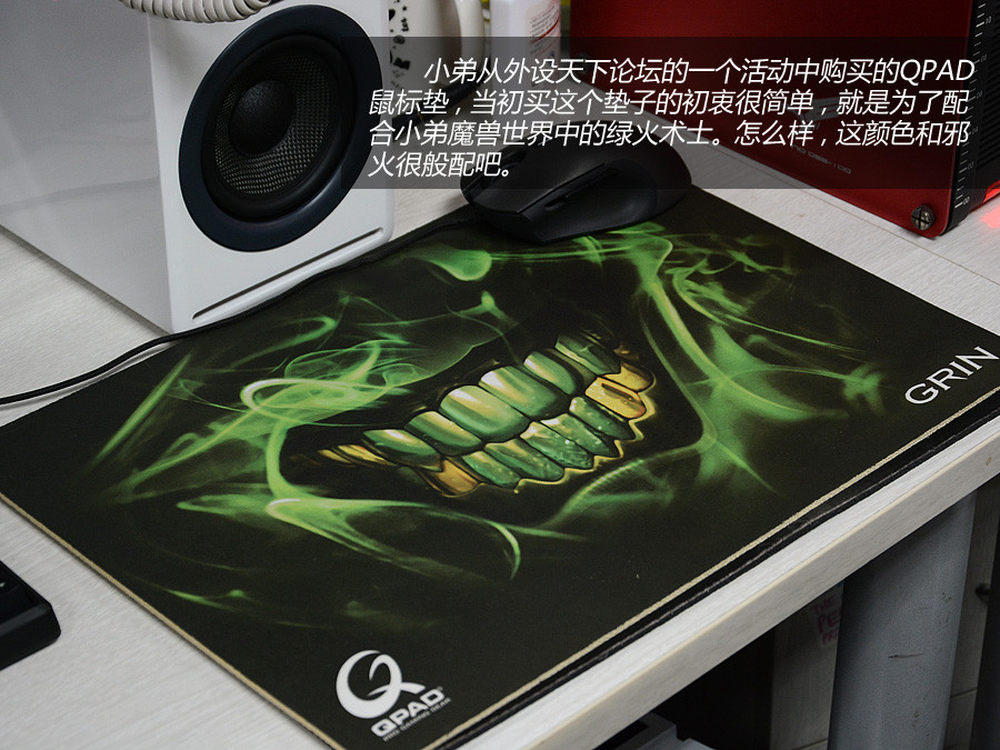 好吧,最近玩魔兽世界似乎有点沉迷了,尤其是泡泡自建了工会之后。不过,这个垫子和我的绿火术士真的很搭,嗯,果真沉迷了,一个鼠标垫都在想着幻化……3/10