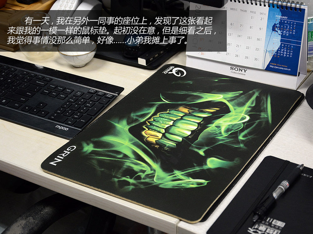同事的GRIN,当然,他买这个肯定不是玩魔兽沉迷了,我估计他是觉得应该找个跟自己帽子颜色相仿的鼠标垫来办公。4/10