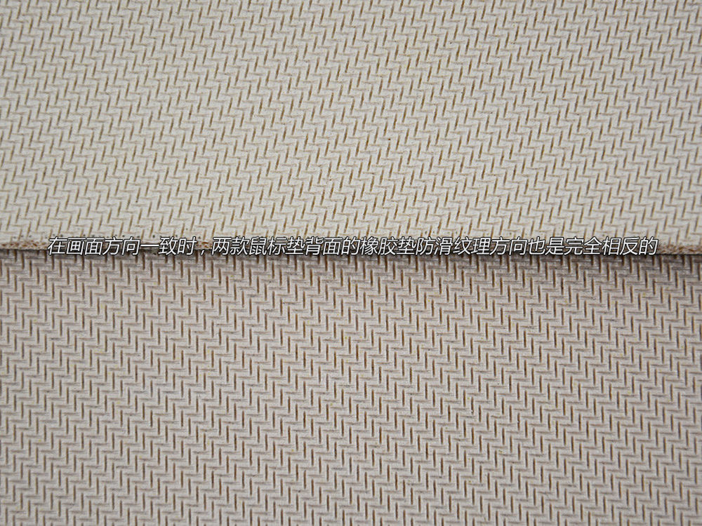 鼠标垫的橡胶垫防滑纹理是个容易忽视的细节,对比之后发现,这两张鼠标垫在这一个环节上,仍然不同,纹理的方向完全相反,而且纹理的深浅也完全不相同。8/10