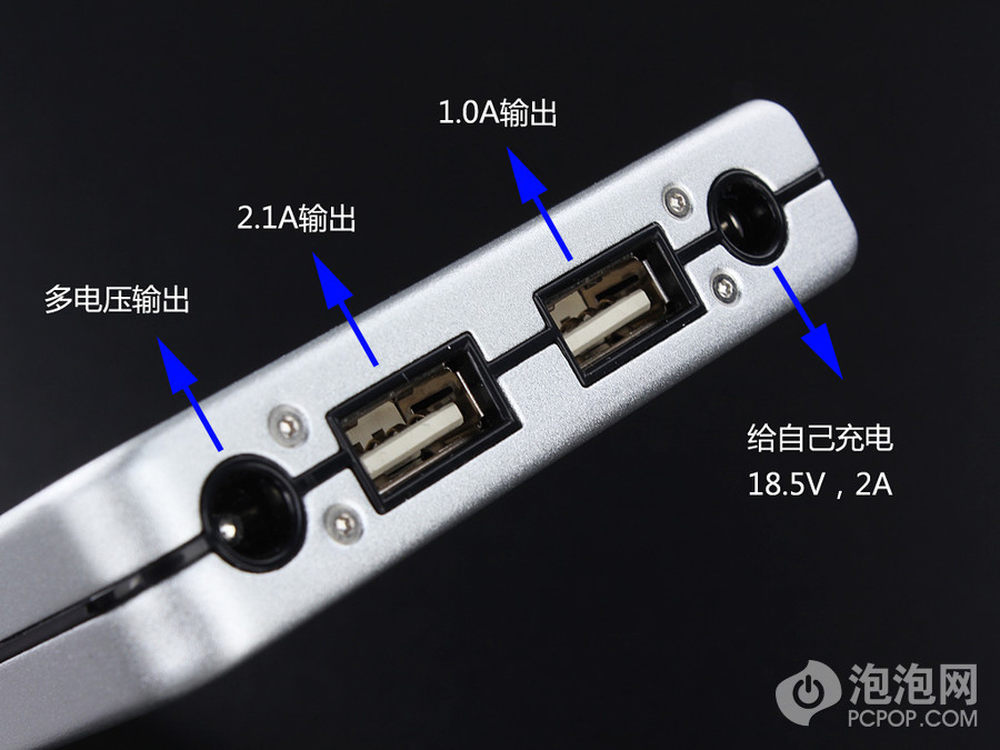 电源输出口有3个,有2个是USB接口,另外一个口是可以实现3种电压的输出口,这一点要好于绝大部分移动电源,因为这意味着它可以为笔记本续航充电,凭这一功能就需要增加很多成本。这都是加分项。7/11