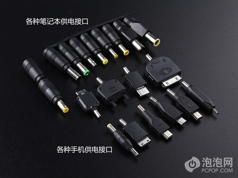 由于需要对多种笔记本、多种手机的接口兼容,爱唯克思RV-12580提供了非常丰富的配件,其中笔记本的配件可以支持SONY、NEC、TOSHIBA、THINKPAD、ACER、ASUS、HP、LENOVO、Benq、DELL的大部分型号笔记本供电口。提供的手机供电口兼容安卓、诺基亚、苹果、三星多种接口,不过想要Lighting接口是不可能的,这100块钱成本目前还没有哪个厂商愿意加进来。9/11