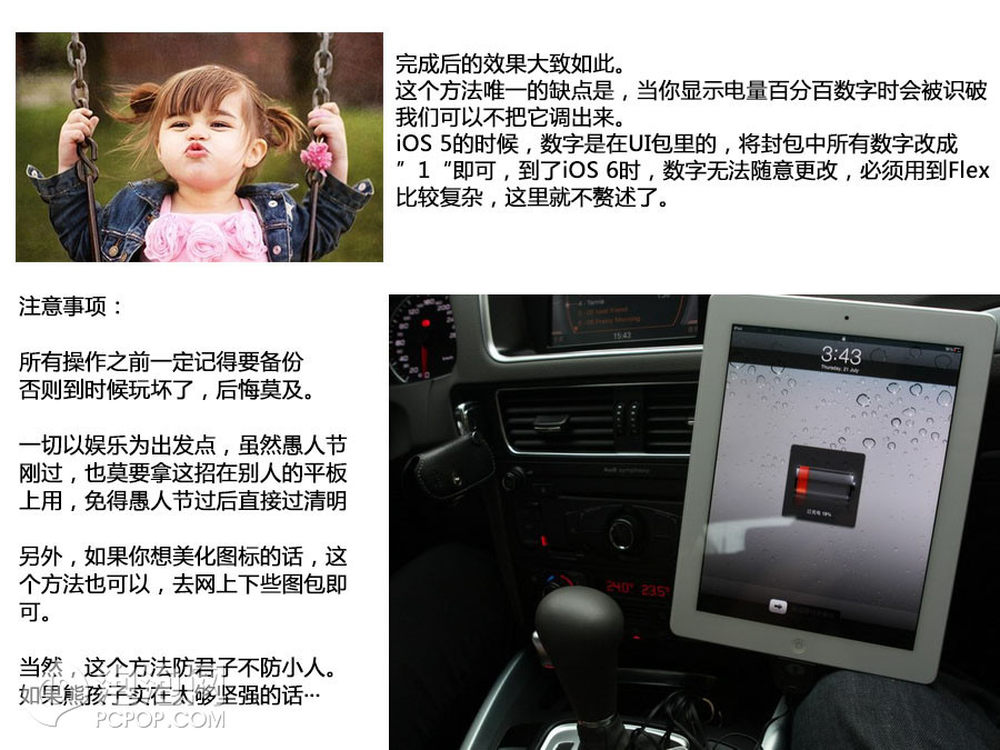这个方法唯一的缺点是,当你显示电量百分百数字时会被识破