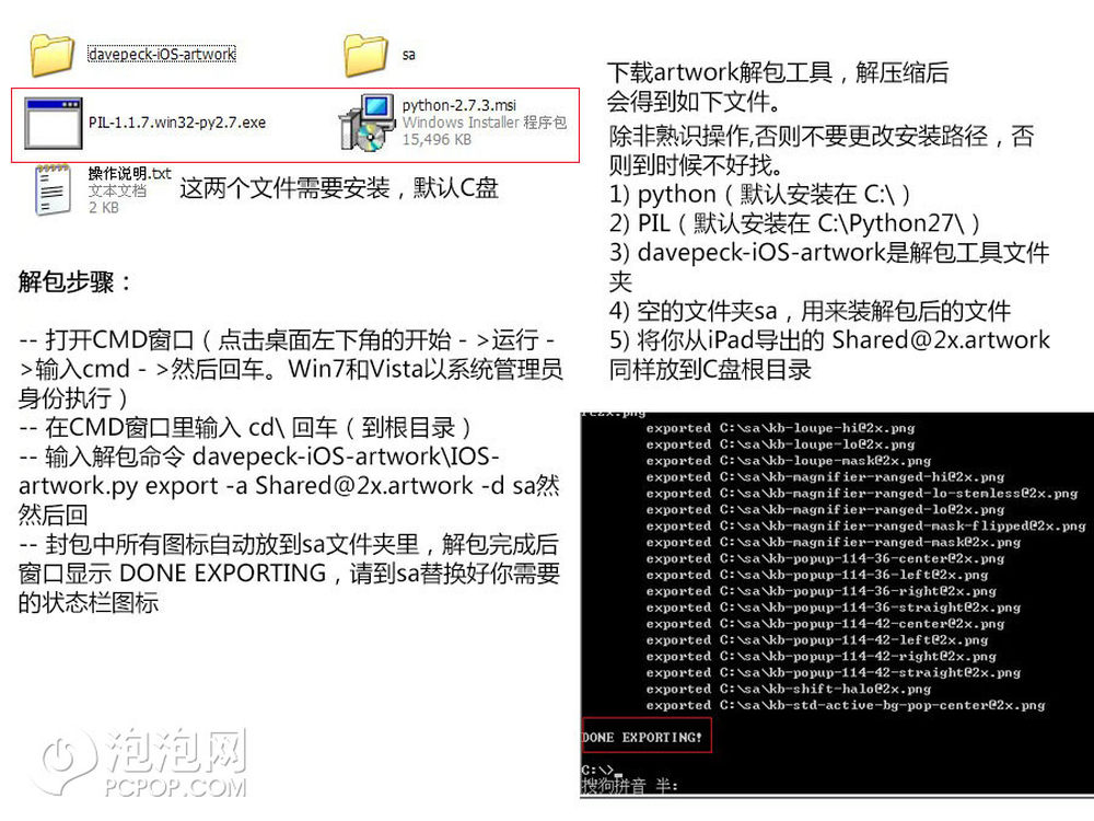 -- 输入解包命令 davepeck-iOS-artwork\IOS-artwork.py export -a Shared@2x.artwork -d sa然后回车