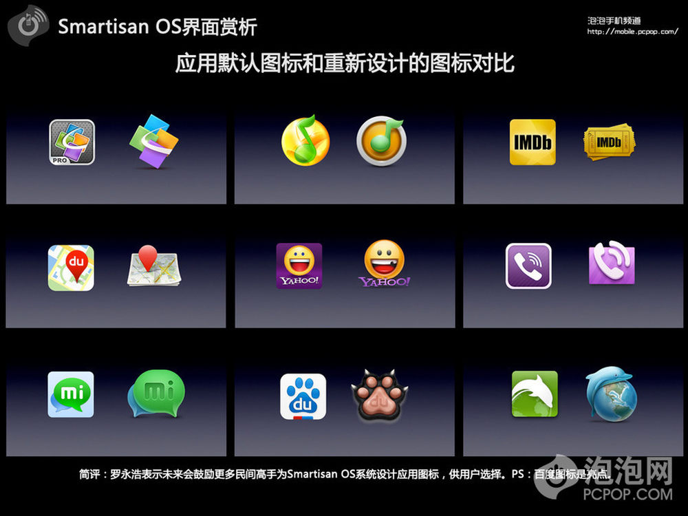 目前绝大多数的图标设计都是采用了圆角矩形,其中包括iOS和第三方优化的Android系统,罗永浩表示“这很不正常”。