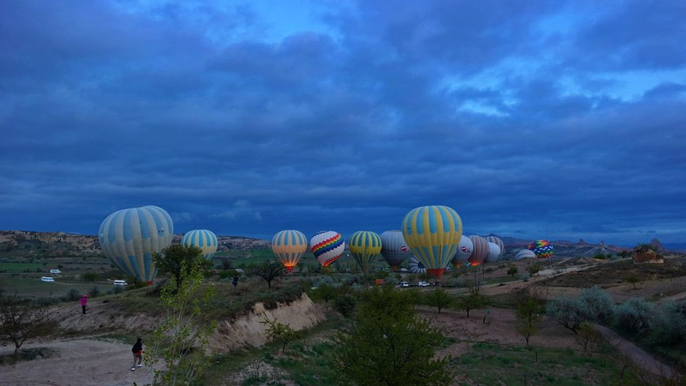 我们一行人坐车到达了预定的起飞地点,看着远处一排排已经蓄势待飞的热气球,心中一股激动的暖流涌了上来。拿起手中的16mm广角镜头拍摄了这壮观的场景,同时等待我们的热气球起飞。