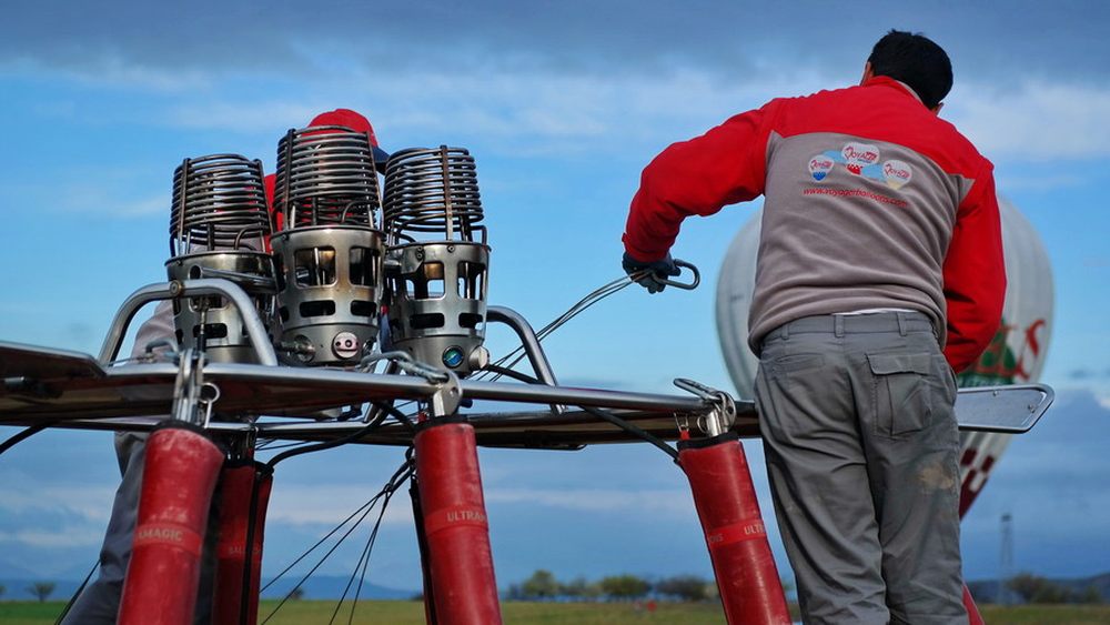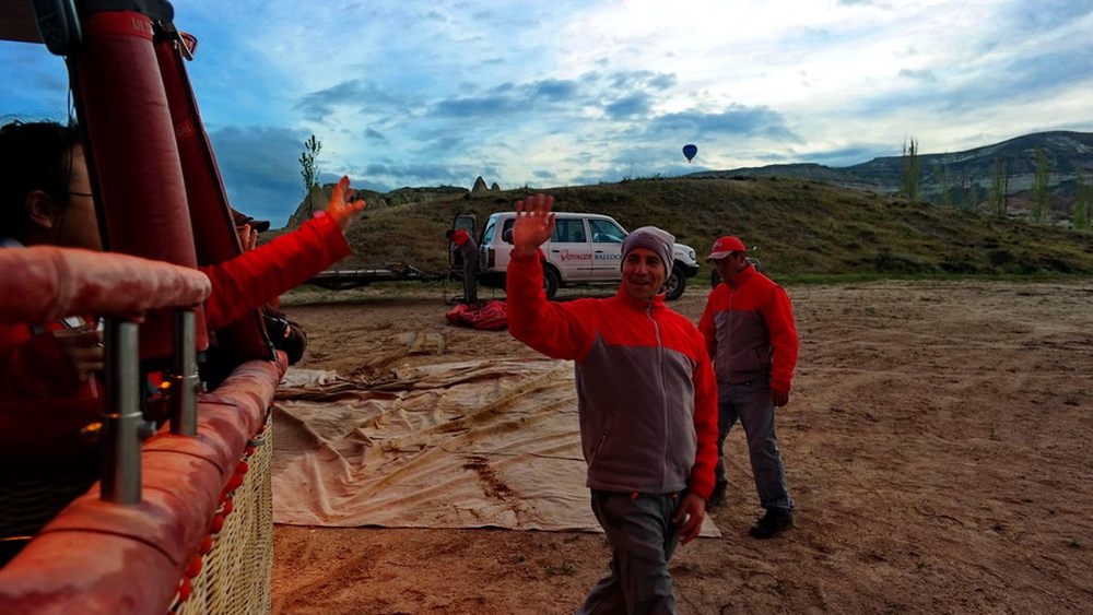 一切准备工作已经准备完成,飞行员给气球加热,我们便缓缓的飞离地面,先和之前的工作人员道别,一会儿见了!