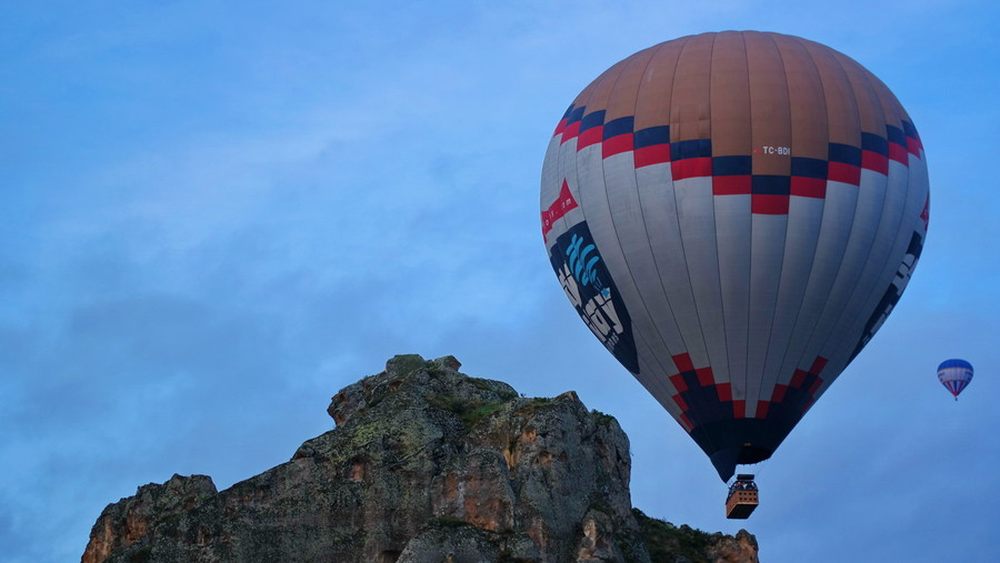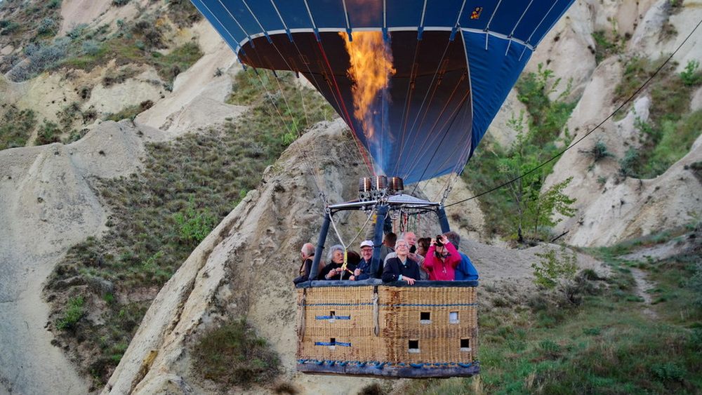比较惊险的一幕,一只热气球不知不觉的飞向了一座山峰。幸好驾驶员经验丰富才避开了这山丘。
