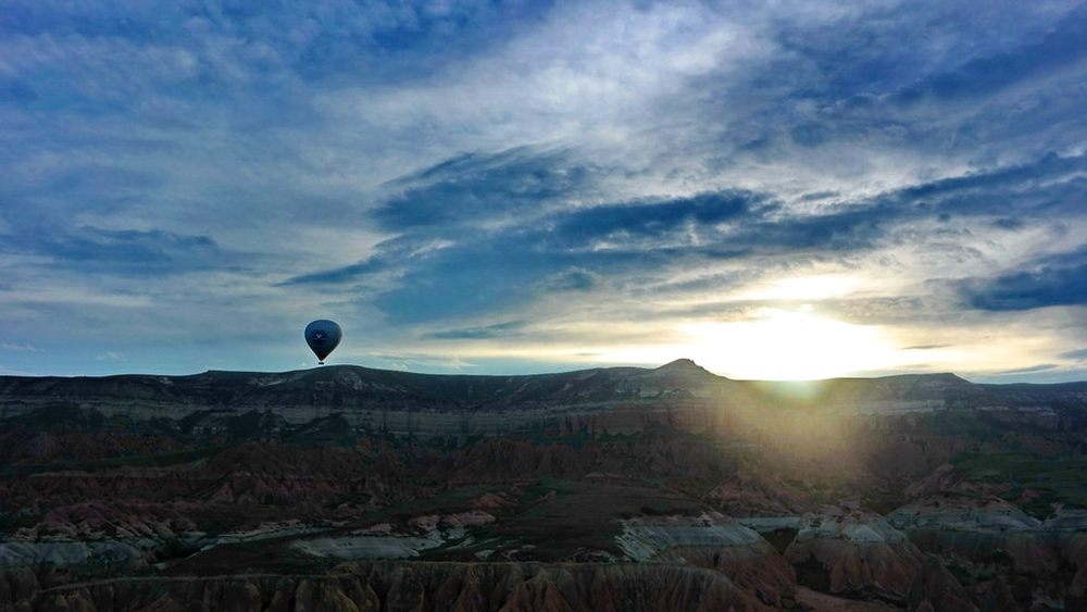 一只热气球飞向了山的另一边,正巧碰到了日出时的逆光,便使用三星NX300的点测模式拍摄了下来。