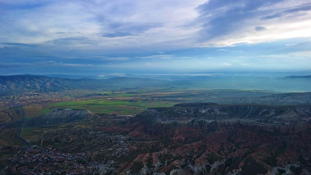 终于我们的气球也腾空飞翔来到了较高的位置,整个上升的过程比较平稳,没出现什么大抖动,站在篮子内的我感觉不到一丝的恐慌。于是我就和同伴交换了下位置,来到了篮子边开始拍摄起来。但是,这个高度如果往下看…还是会比较晕的。