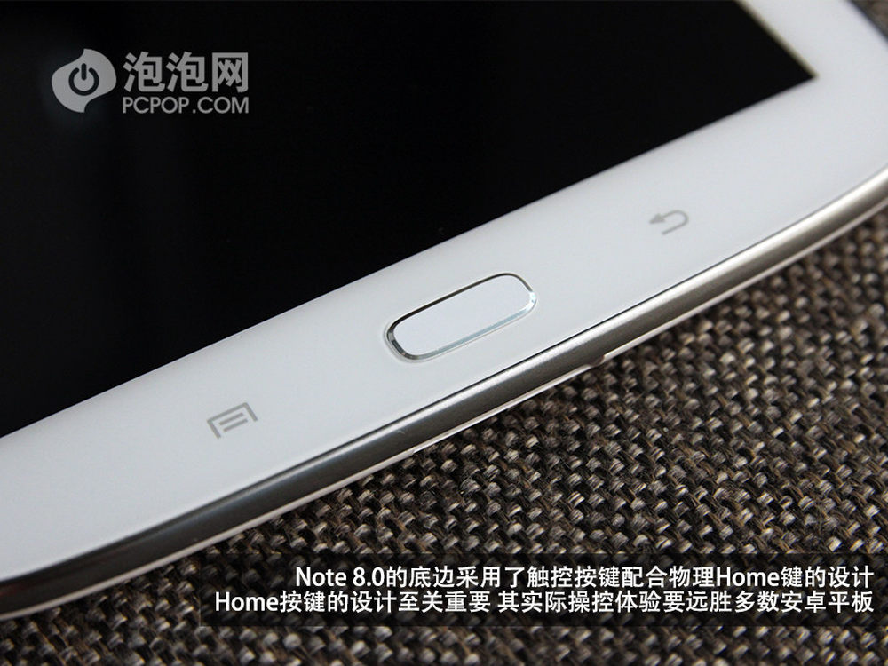 三星GALAXY Note 8.0底边的触控键和物理按键介绍。