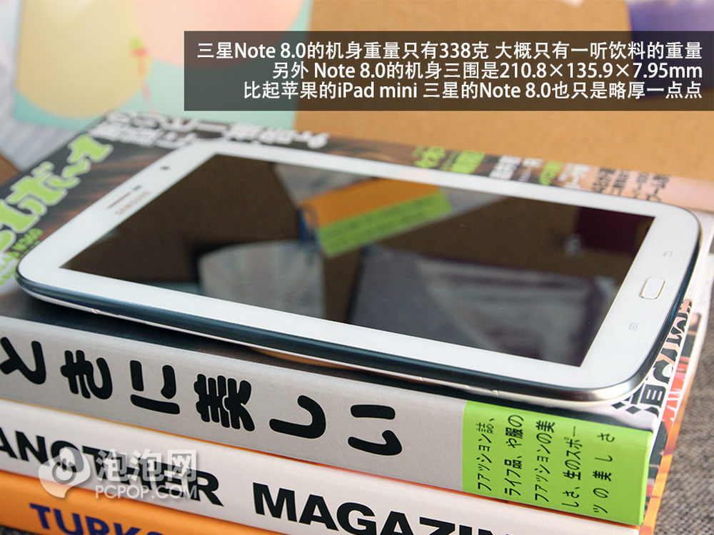 三星GALAXY Note 8.0的设计可单手持,但不能完全掌控。