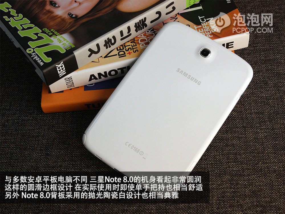GALAXY Note 8.0采用抛光陶瓷白设计的背板特写。