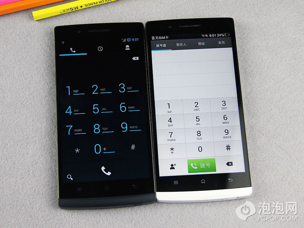 CM10.1的程序界面为原生的黑底,而OPPO官方则是以手机壁纸为背景。CM10.1的系统图标要更小一些。