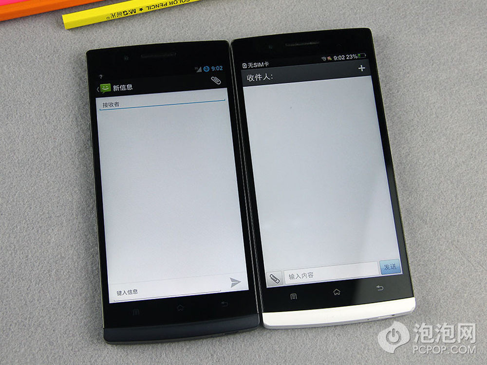 短信界面两中不同的系统设计上比较相似,图标有些区别。