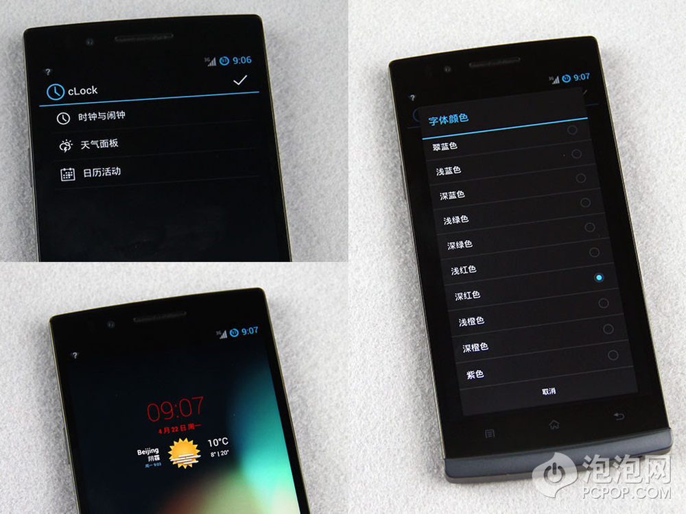CM10.1时钟插件可以自行设置颜色,在时钟下方的天气插件同样可以更改颜色。