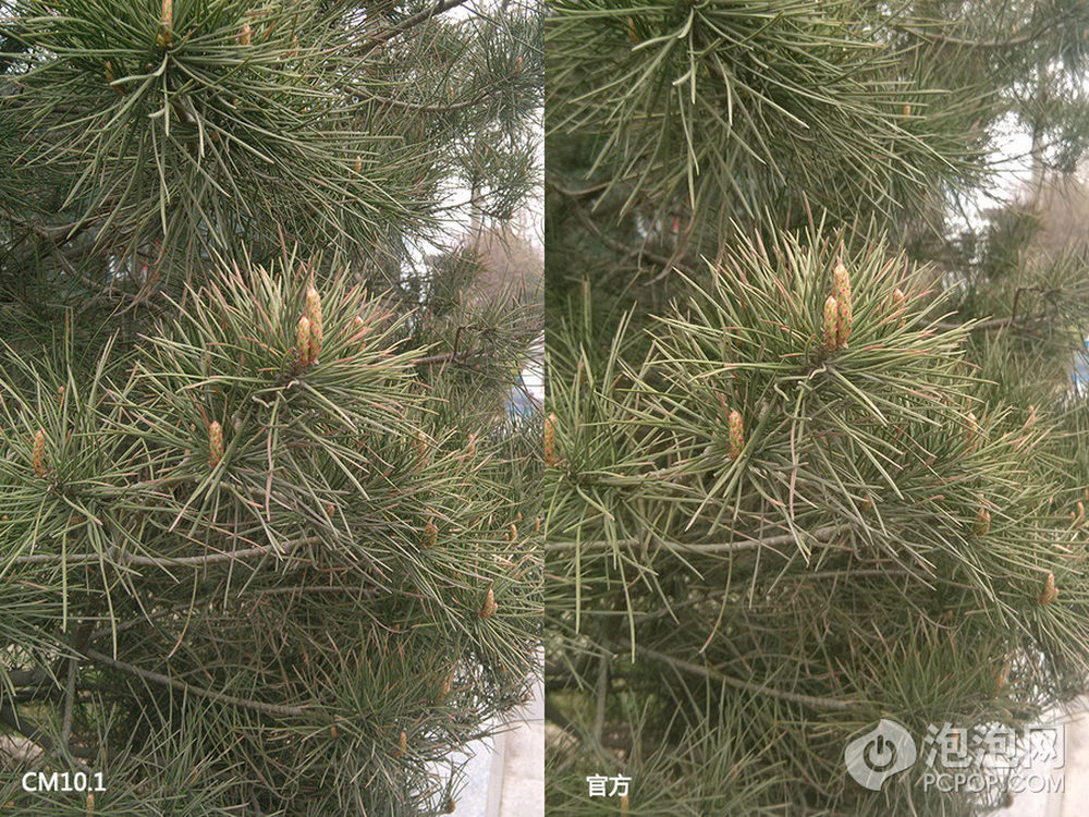 这张照片可以看的比较清楚一些,右侧官方拍出的照片比左侧CM10.1拍出的照片偏暖。18/26