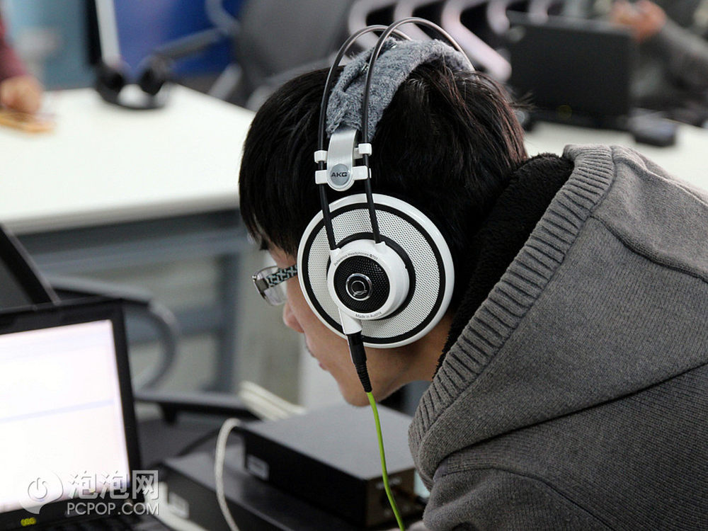 本次试听会总共只来了3位女性玩家,着实有些捉襟见肘,稀缺资源啊有木有?图中美女玩家自配BOSE IE2耳塞,喜欢澎湃的低频。在开幕之前很早就到了现场,坐在首位拿起张扬线的Q701就是一顿美听,AKG的设计着实复合审美啊!