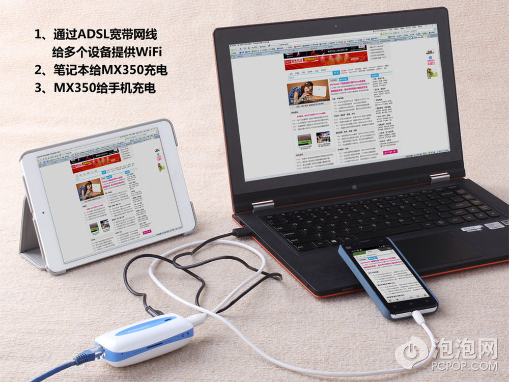 当我们这样做了以后,很多设备就能一起上网了,而且3G无线网卡由移动电源功能,10小时续航不成问题。14/17