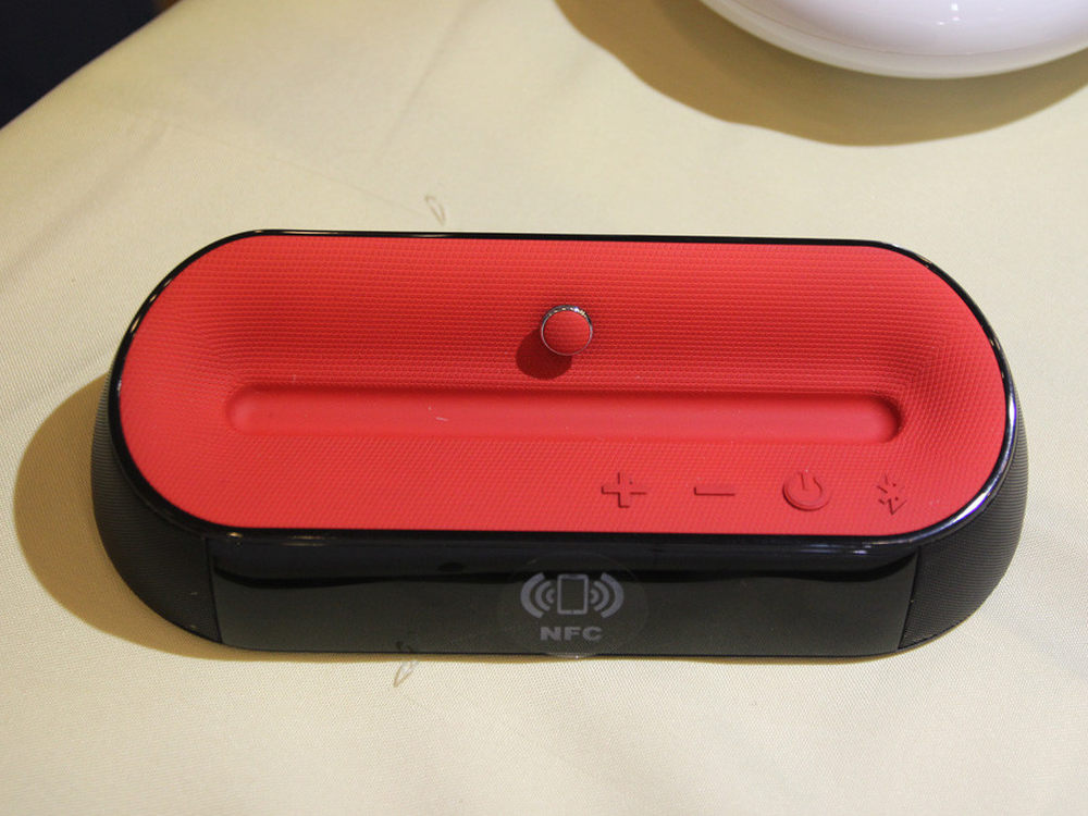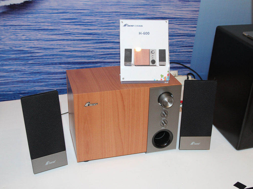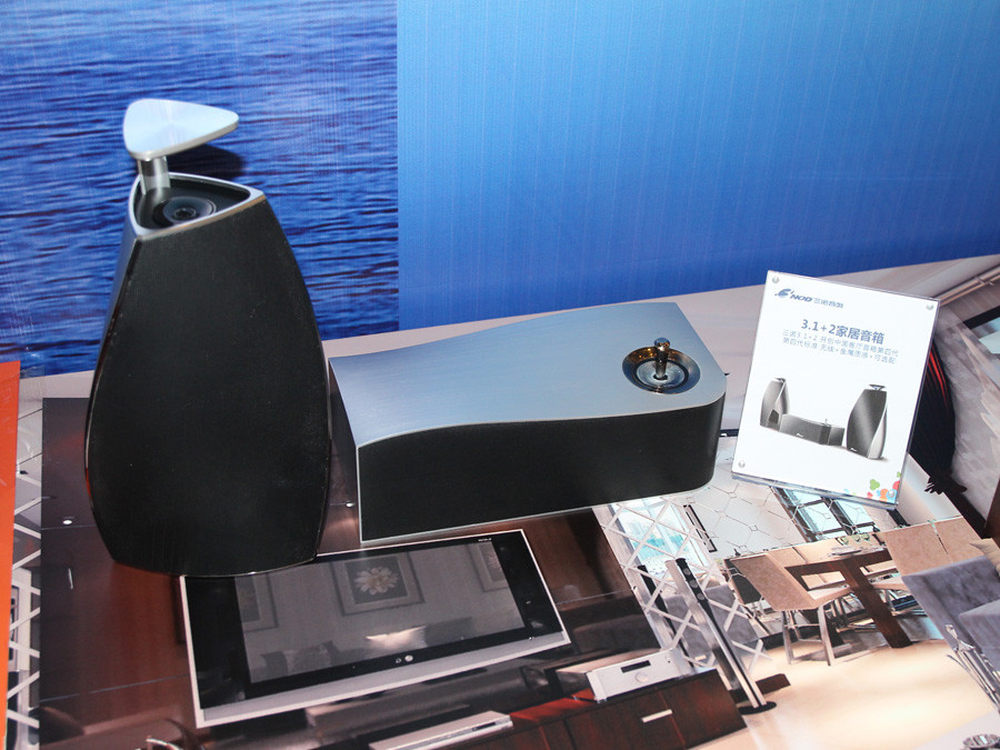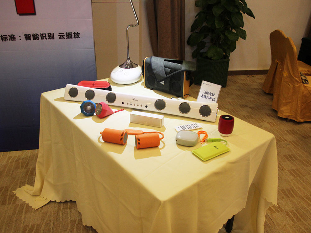 三诺2013新品便携数码音箱主要可以用两个词来概括:时尚、惊艳。一张小小的展示台上,摆满了电视音箱、手机音箱、台灯音箱,各式各样的新奇玩意,不禁让人眼前一亮。3/16