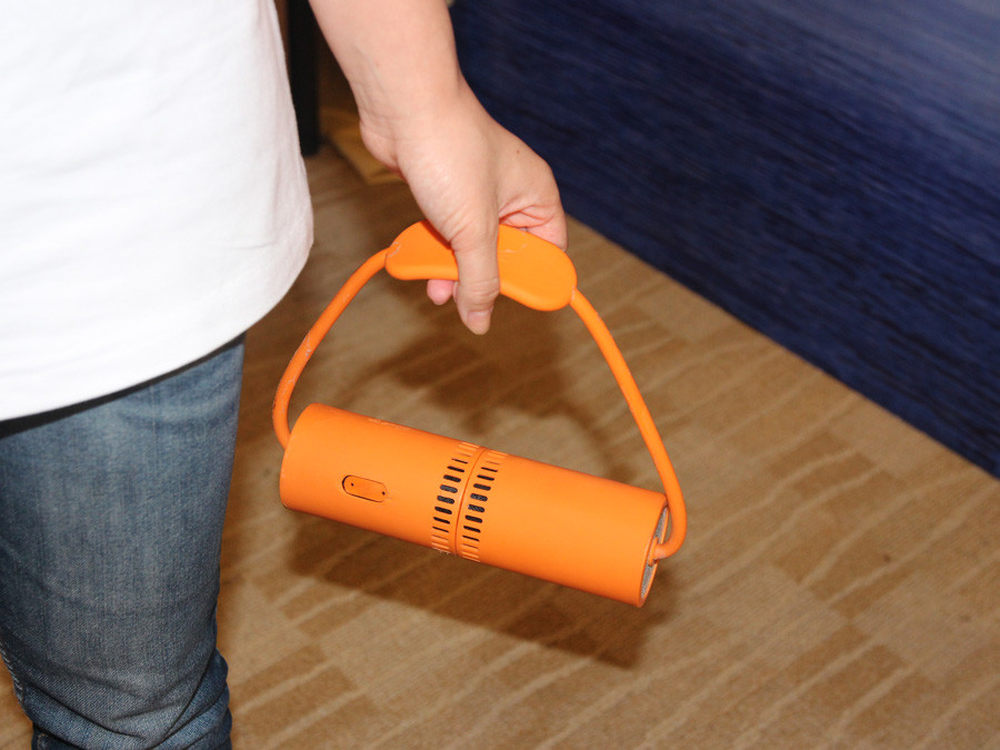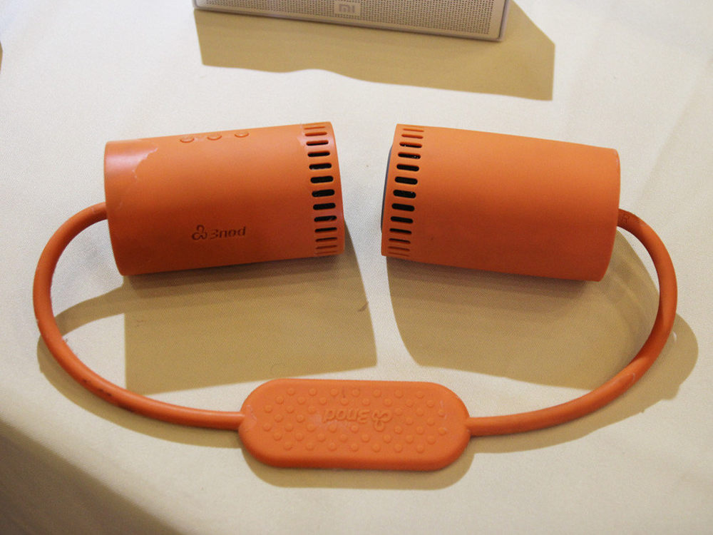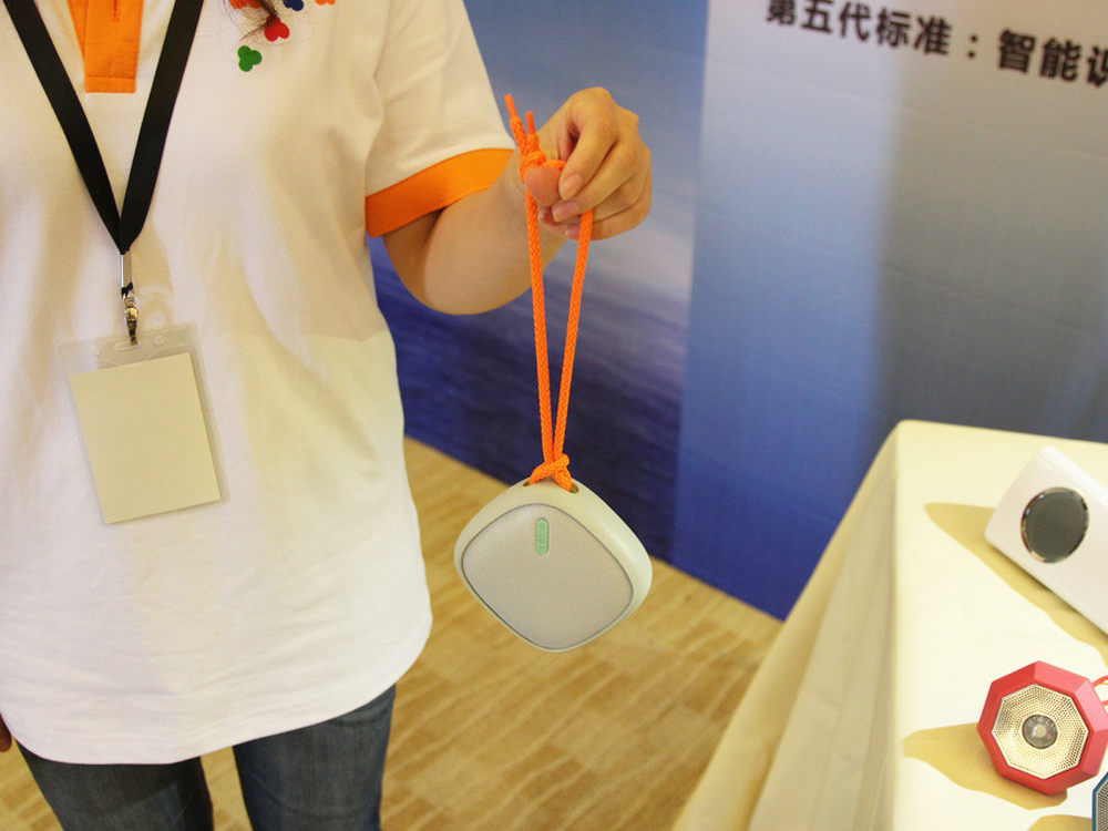 三诺这次经销商年会上展示出不少户外主题的蓝牙音箱,和运动密切相关,刚才看到好几款方便携带的小音箱,这也是一款可以挂在手腕上的蓝牙音箱,跑步、登山、徒步的时候都可以带着。9/16