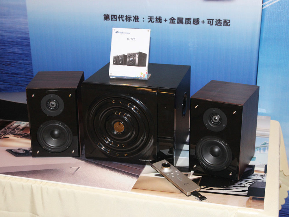 与普通2.1音箱相比,三诺H-725还是更具特色的,低音炮与传统的基本一致,而卫星箱则采用两分频结构,书架箱造型,摆在桌面很是体面。提供方便操控音箱的遥控器,不用的时候还可以收纳在低音炮前面板的凹槽内,避免丢失。15/16