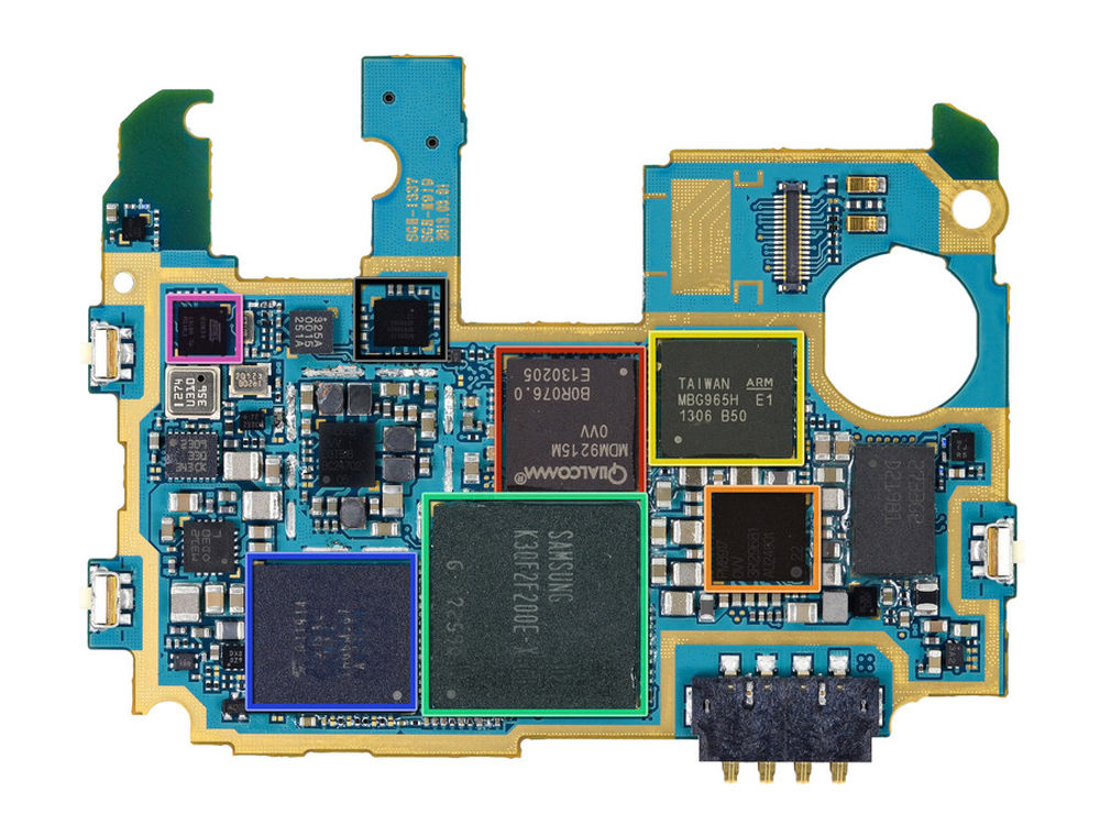 图示三星的内存,高通的4G模块和电源管理模块,东芝的16GB闪存,高通的音频解码模块23/35