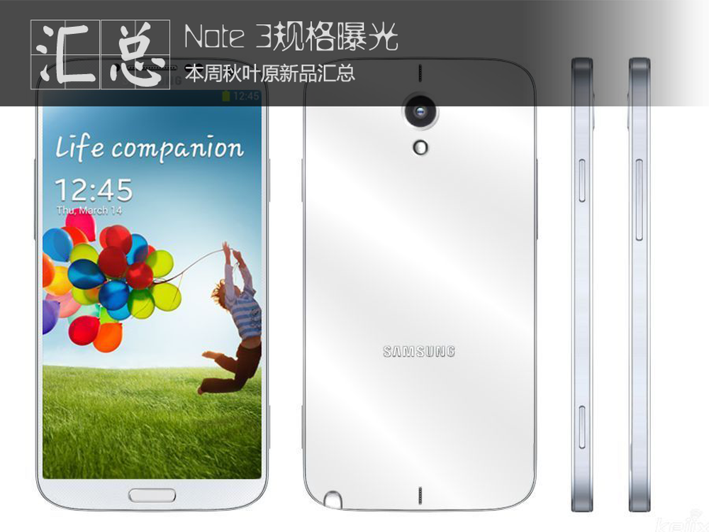 SamMobile收到消息称,三星Galaxy Note III即将浮出水面,该机采用5.99英寸全高清Super AMOLED触摸屏,1300万像素摄像头,Exynos 5处理器及3GB RAM,出厂将搭载最新的Android 4.3操作系统,Note 3将在今年的IFA 2013上发布,去年Note 2同样是在IFA发布。