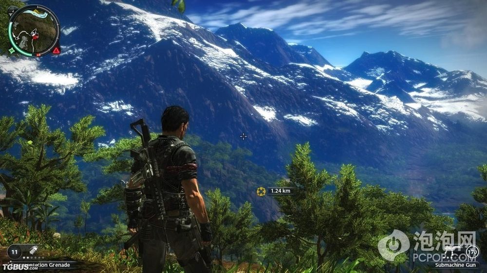有些时候游戏不一定需要电影化的镜头,或者惊奇的剧情来吸引旁观者。如果选一款游戏在网吧玩然后去吸引其他玩家,那《正当防卫2》绝对是个不错的选择。游戏的画质首先就很不错,关键是好的画质下有足够好的景色来展现,雪山、雨林、沙漠,在这个热带小岛上无所不包。更厉害的是主角可以从几千米的高空一跃而下,或者开战斗机四处旅行。再配上那个无解的抓钩,你可以到达游戏中几乎任何地方。这样的自由度是《GTA》系列和《黑手党》系列这样“2维”的游戏比不了的。6/11