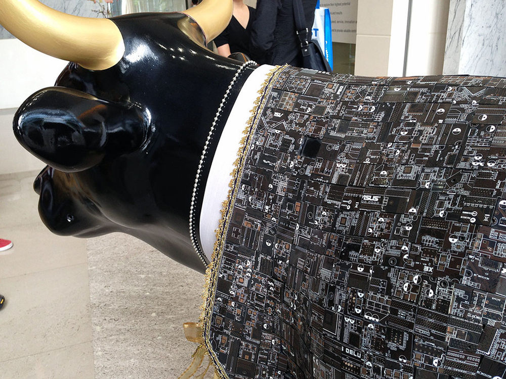 大厅里这头牛塑像的身上,披着华硕主板剪裁的披风。牛市华人的品质,作为华人品牌,华硕的五字品牌理念也正是牛的精神。
