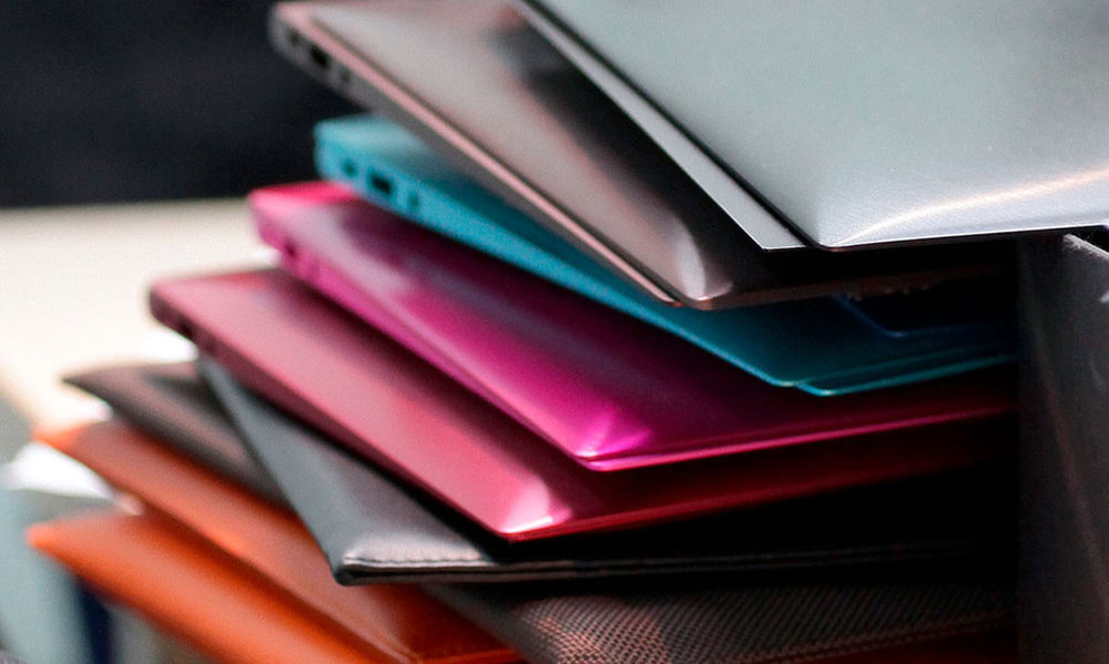设计团队给我们展示了他们在设计ZENBOOK时的多种颜色尝试,包括了蓝色、红色等。右下角微微露出一角的应该就是最终上市的蔷薇粉版本。