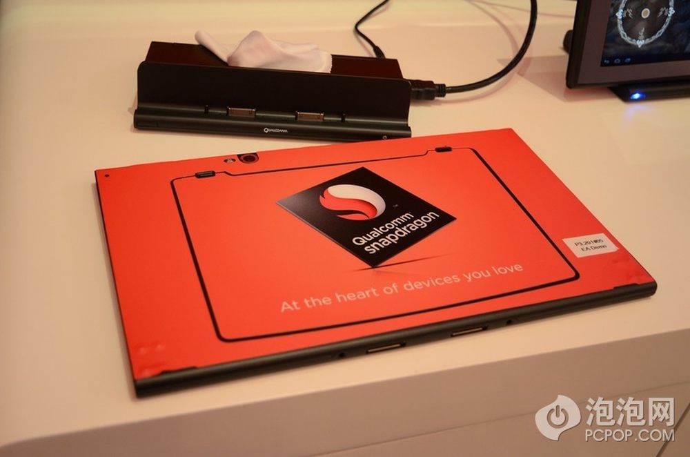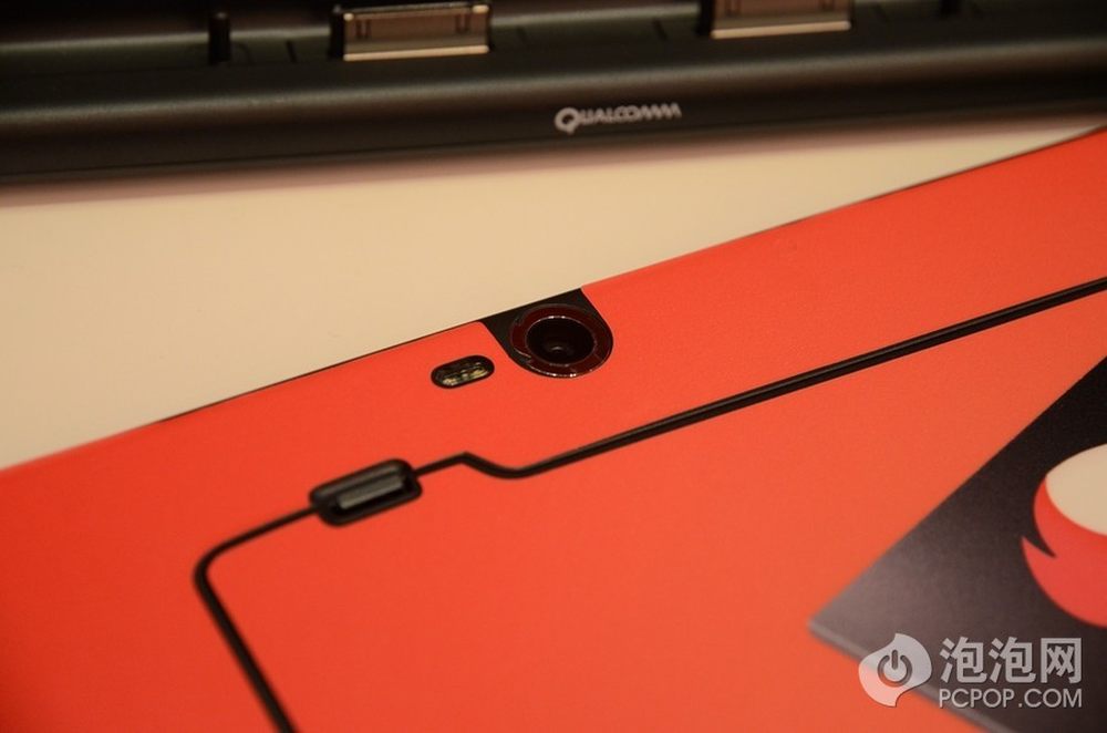 这两天我们见识了高通最新推出的骁龙400系列芯片,而且高通还展出了其全资子公司推出的QRD平板参考设计。我们也有幸在高通展台见识到了基于400系列的QRD 10英寸平板电脑。目前这款平板电脑的详细参数我们还不得而知,不过可以具体看看产品的外形解解馋了。这款平板采用了前黑后橘的颜色搭配,机身厚度也很轻薄,目测在8-9mm之间,前后置摄像头,背壳后面还采用了可换电池的结构。11/14