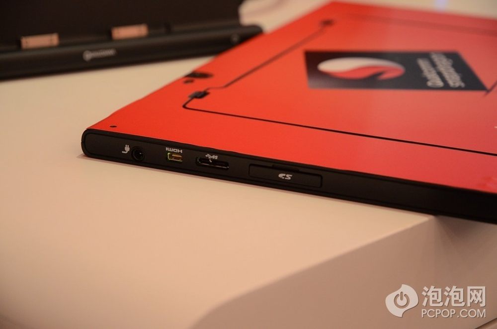 这两天我们见识了高通最新推出的骁龙400系列芯片,而且高通还展出了其全资子公司推出的QRD平板参考设计。我们也有幸在高通展台见识到了基于400系列的QRD 10英寸平板电脑。目前这款平板电脑的详细参数我们还不得而知,不过可以具体看看产品的外形解解馋了。这款平板采用了前黑后橘的颜色搭配,机身厚度也很轻薄,目测在8-9mm之间,前后置摄像头,背壳后面还采用了可换电池的结构。12/14